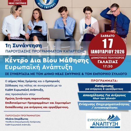 ΝΕΑ ΣΜΥΡΝΗ: 1η Συνάντηση Παρουσίασης Προγραμμάτων Κατάρτισης για ανέργους