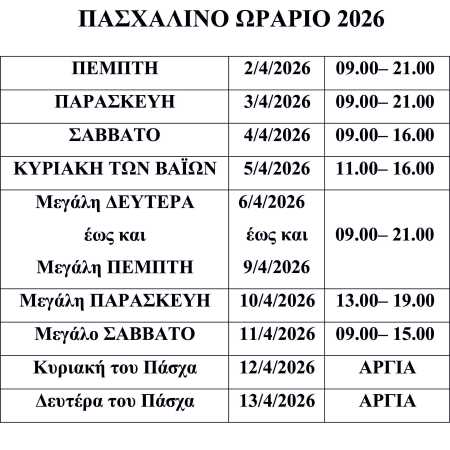 Το Πασχαλινό ωράριο των καταστημάτων της Νέας Σμύρνης