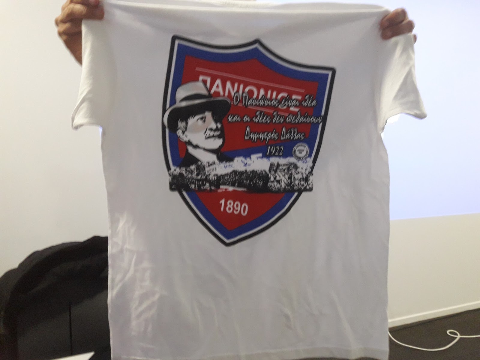Mπλουζάκια με τον Δημητρό Δάλλα και την ιστορική του φράση «Ο Πανιώνιος είναι ιδέα και ιδέες δεν πεθαίνουν»