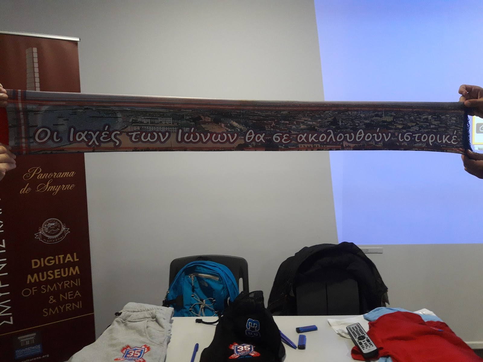 Η αρχή έγινε με την ομιλία από τον συγγραφέα Θοδωρή Μπελίτσο, στα γραφεία του συλλόγου, ο οποίος περιέγραψε αναλυτικά την ιστορία του Πανιωνίου από την ίδρυση του στη Σμύρνη και την επανίδρυση στην Αθήνα μέχρι σήμερα.