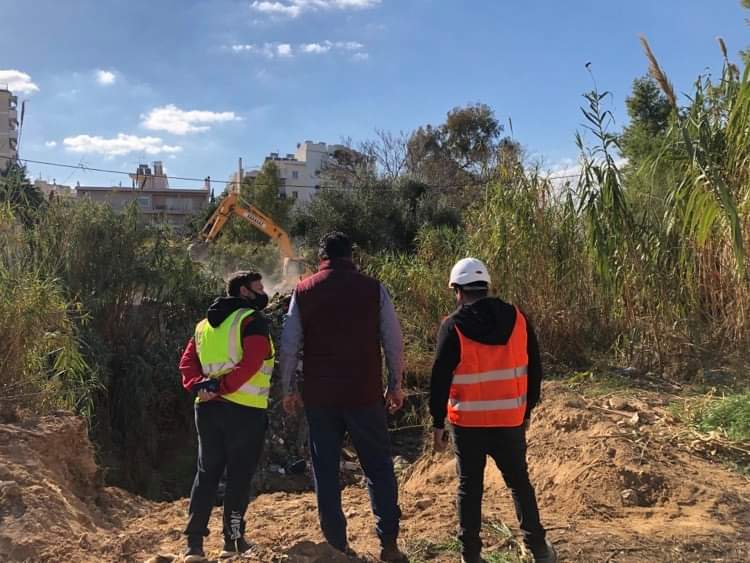 Παράλληλα, στον χώρο πραγματοποιήθηκε καθαρισμός από τα σκουπίδια και τα αδρανή υλικά καθώς και αποψίλωση όλων των πρόχειρων κατασκευών που επιβαρύνουν το ρέμα.