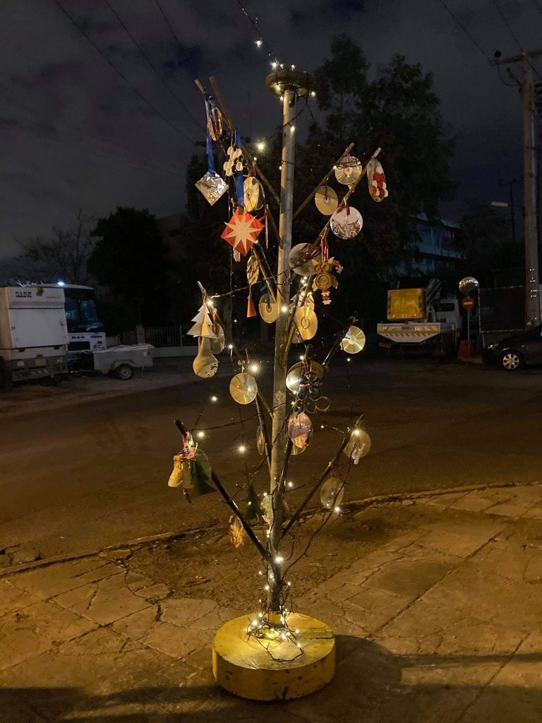 Το δέντρο φτιάχτηκε εξ ολοκλήρου από ανακυκλώσιμα υλικά και όπως αναφέρει σε ανακοίνωσή του ο Αντιδήμαρχος Καθαριότητας Γιώργος Κρικρής, πρόκειται για δημιουργίες της εθελοντικής ομάδας #together.