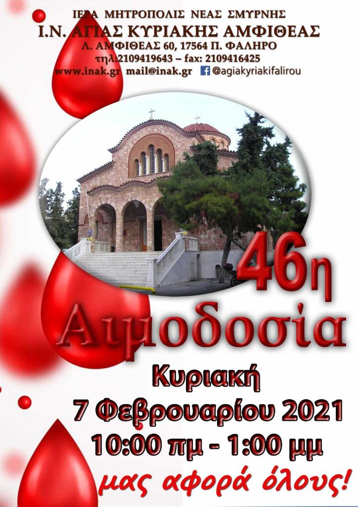 3 Φεβρουαρίου 2021 Epikaira I.N. ΑΓΙΑΣ ΚΥΡΙΑΚΗΣ: 46η Αιμοδοσία την Κυριακή 7 Φεβρουαρίου Στὶς 7 Φεβρουαρίου 2021 ἡμέρα Κυριακή, στις 10.00πμ – 1.00μμ, ὁ Ἱερὸς Ναὸς Ἁγίας Κυριακῆς Παλαιοῦ Φαλήρου διοργανώνει τὴν 46η Ἐθελοντικὴ Αἱμοδοσία τῆς Ἐνορίας. Κοινοποιήστε: Στείλε ένα σύνδεσμο σε έναν φίλο(Ανοίγει σε νέο παράθυρο) Email Εκτύπωση(Ανοίγει σε νέο παράθυρο) Εκτύπωση Mοιραστείτε στο Facebook(Ανοίγει σε νέο παράθυρο) Facebook Μοιραστείτε στο LinkedIn(Ανοίγει σε νέο παράθυρο) LinkedIn Μοιραστείτε στο X(Ανοίγει σε νέο παράθυρο) Χ Μοιράσου στο WhatsApp(Ανοίγει σε νέο παράθυρο) WhatsApp Μου αρέσει! Φόρτωση... Related