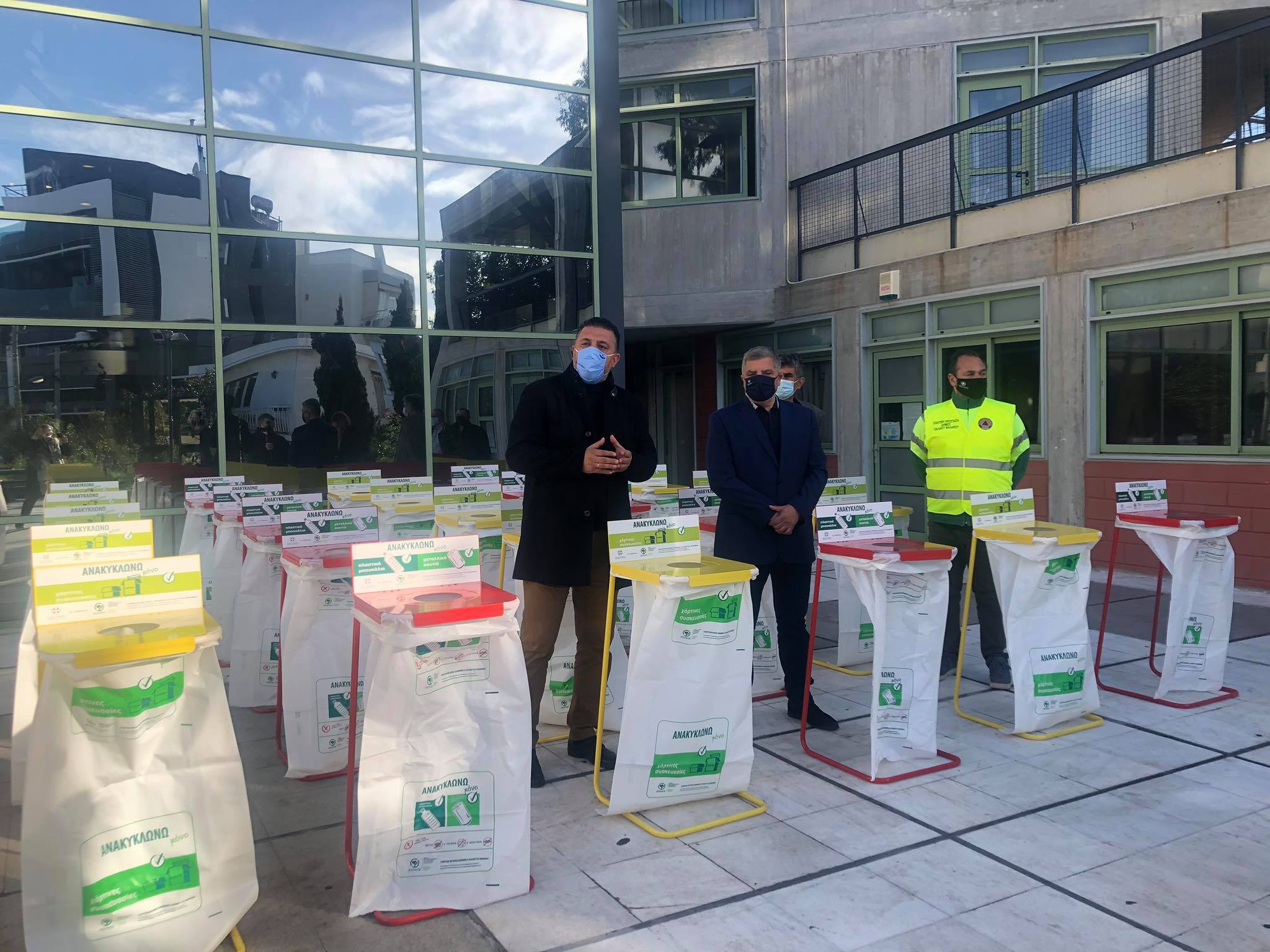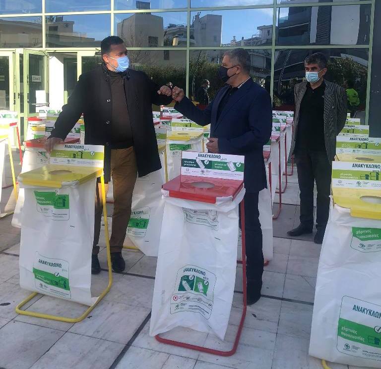 Στο πλαίσιο του προγράμματος «Ανακύκλωση 2020» που έχει στόχο την ενίσχυση του συστήματος διαλογής ανακυκλώσιμων απορριμμάτων στην πηγή, παραδόθηκαν σήμερα στον Δήμο Παλαιού Φαλήρου από την Περιφέρεια Αττικής 252 κάδοι εσωτερικού χώρου ανακύκλωσης και χωριστής συλλογής πλαστικών, μεταλλικών και χάρτινων συσκευασιών.