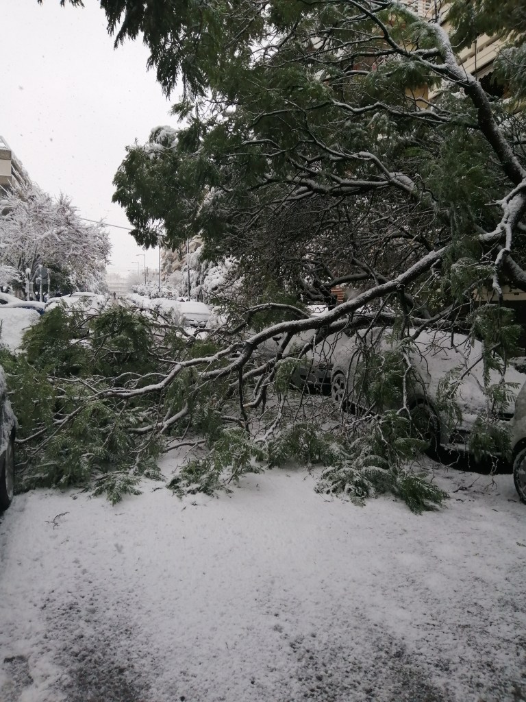 Τρίτον, αντικειμενικά, οι Δήμοι του αστικού συγκροτήματος δεν έχουν όλο αυτό το στόλο των μηχανημάτων, για να καθαριστούν οι δρόμοι μέσα σε μικρό χρονικό διάστημα και ενόσω η κακοκαιρία ήταν σε εξέλιξη. Πολύ περισσότερο, γερανούς και άλλο εξοπλισμό για τον τεμαχισμό και την απομάκρυνση των πεσμένων κορμών.