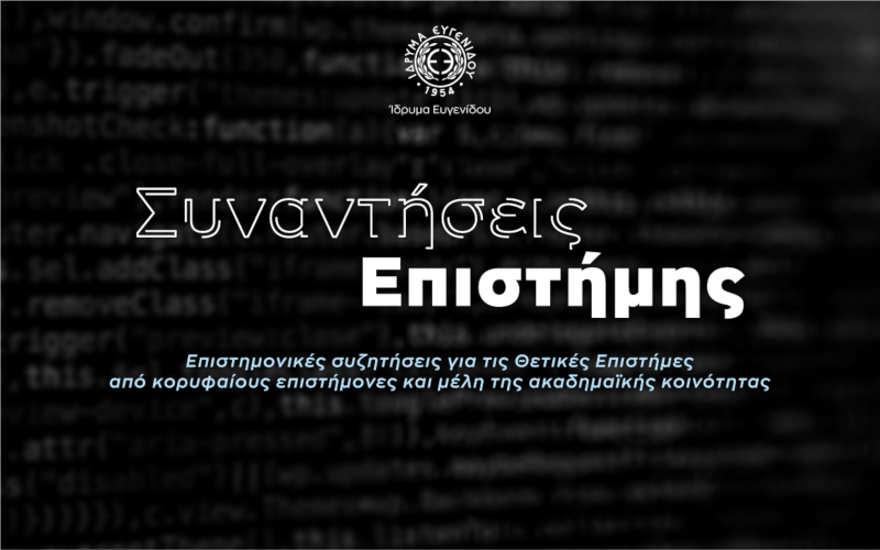 Στο πλαίσιο αυτό, το Ίδρυμα Ευγενίδου εγκαινιάζει έναν κύκλο συζητήσεων με τίτλο «Συναντήσεις Επιστήμης», ο οποίος αποσκοπεί στη δημιουργία μίας εστίας ανταλλαγής απόψεων, ανακοινώσεων και ενημέρωσης για την πορεία των επιστημονικών εξελίξεων και ερευνών στις Θετικές Επιστήμες, από κορυφαίους επιστήμονες και μέλη της ακαδημαϊκής κοινότητας. Οι συναντήσεις αναμένεται να καλύψουν επιστήμες μεταξύ των οποίων τα Μαθηματικά, τη Βιολογία, τη Φυσική, τη Χημεία, τη Κοσμολογία, το Περιβάλλον αλλά και την Πληροφορική.