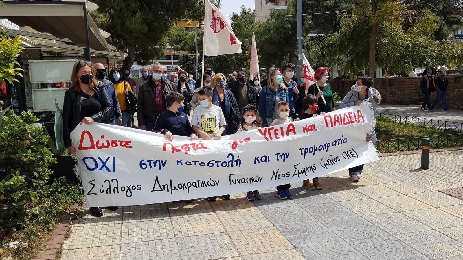 Συγκέντρωση στην πλατεία Νέας Σμύρνης πραγματοποίησαν το πρωί της Κυριακής τοπικοί φορείς και εργατικά σωματεία ζητώντας ουσιαστικά μέτρα προστασίας της υγείας του λαού εκεί όπου γίνεται η μεγάλη διασπορά, στους χώρους δουλειάς, στα Μέσα Μαζικής Μεταφοράς και την ενίσχυση των δομώνΥγείας- Πρόνοιας.
