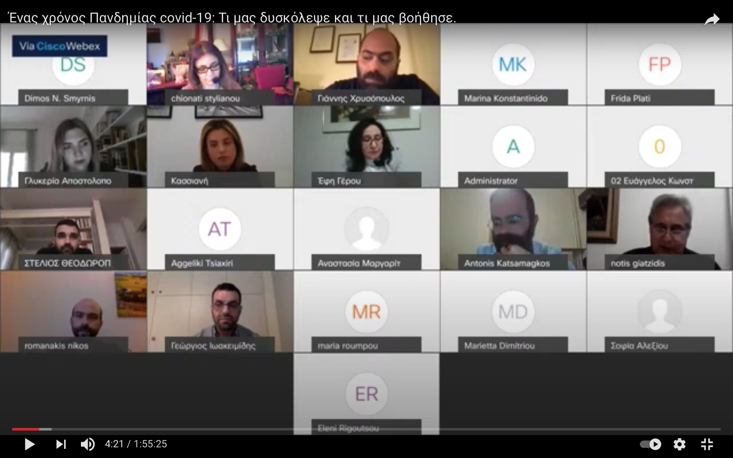 Η Τοπική Ομάδα Προαγωγής της Ψυχικής Υγείας (Τ.Ο.Π.Ψ.Υ.) του Δήμου Νέας Σμύρνης πραγματοποίησε τη Δευτέρα 12 Απριλίου, Διαδικτυακή Ημερίδα με θέμα «Ένας χρόνος πανδημίας covid-19: Τι μας δυσκόλεψε και τι μας βοήθησε».