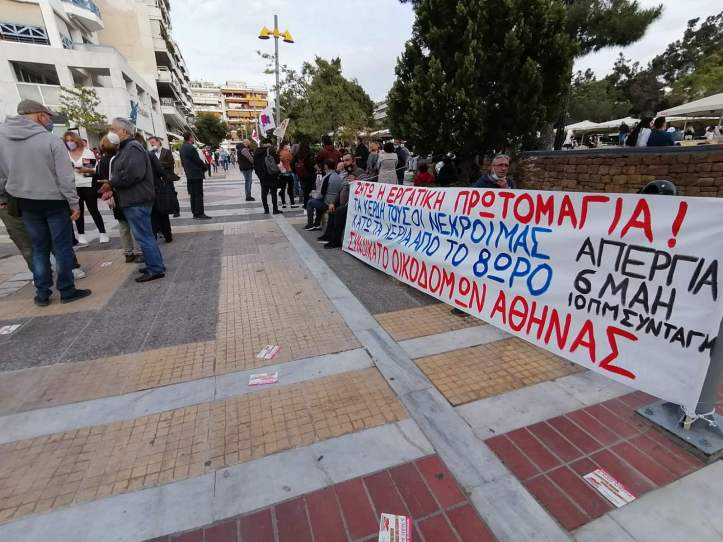 Το απόγευμα της Τετάρτης 28 Απριλίου, το παράρτημα Καλλιθέας και όμορων δήμων του Συνδικάτου Οικοδόμων Αθήνας μαζί με τον Σύλλογο Δημοκρατικών Γυναικών Νέας Σμύρνης, πραγματοποίησαν κινητοποίηση στην κεντρική πλατεία της Νέας Σμύρνης στα πλαίσια της προετοιμασίας για την απεργία της Εργατικής Πρωτομαγιάς.