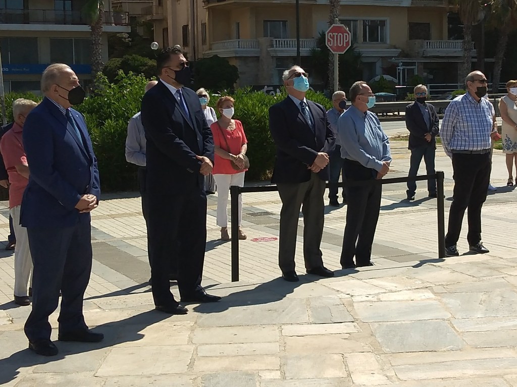 Μετά το πέρας της δέησης ακολούθησε κατάθεση στεφάνου από τον Δήμαρχο Παλαιού Φαλήρου και κρατήθηκε ενός λεπτού σιγή.