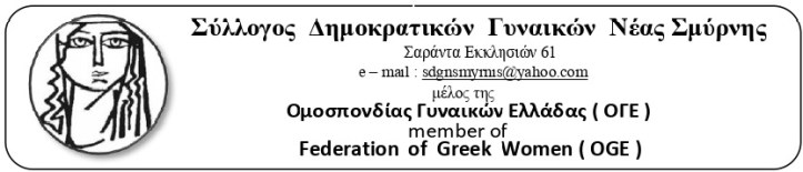 Την Τρίτη 22 Ιουνίου ο Σύλλογος Δημοκρατικών Γυναικών Νέας Σμύρνης πραγματοποίησε στην κεντρική πλατεία κινητοποίηση-διαμαρτυρία με θέμα την εφαρμογή της δίχρονης προσχολικής αγωγής για όλα τα παιδιά σε σύγχρονα ασφαλή νηπιαγωγεία.