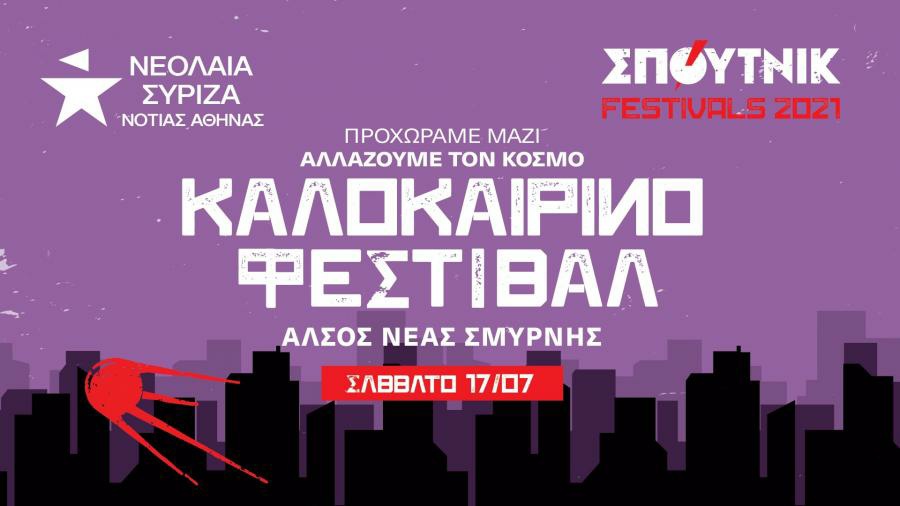 Φεστιβάλ με κεντρικό σύνθημα «Προχωράμε Μαζί – Αλλάζουμε τον κόσμο» διοργανώνει το Σάββατο 17 Ιουλίου στο Άλσος Νέας Σμύρνης η Νεολαία ΣΥΡΙΖΑ -Π.Σ. της Νότιας Αθήνας.