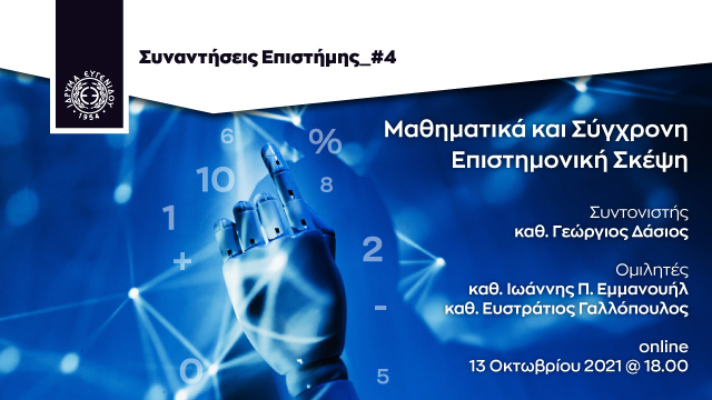 Επιστρέφουν δυναμικά οι «ΣυναντήσειςΕπιστήμης» που διοργανώνει φέτος ‒για δεύτερη συνεχόμενη χρονιά‒ το Ίδρυμα Ευγενίδου. Η αρχή γίνεται όπως πάντα διαδικτυακά, την Τετάρτη 13 Οκτωβρίου και ώρα 18:00 και τίτλος της πρώτης αυτής συνάντησης είναι «Μαθηματικά και Σύγχρονη Επιστημονική Σκέψη».