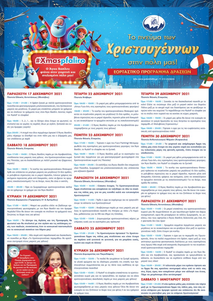Πληροφορίες για το πρόγραμμα και τις εκδηλώσεις στο : https://palaiofaliro.gr/xmaspfaliro/