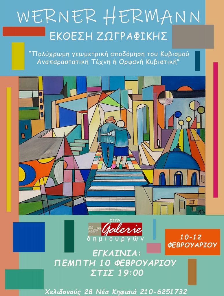 Η Galerie Δημιουργών υποδέχεται από την Πέμπτη 10 Φεβρουαρίου μέχρι και το Σάββατο 12 Φεβρουαρίου τον εικαστικό Werner Hermann με τα υπέροχα, γεμάτα γεωμετρία αλλά και ευαισθησία έργα του.