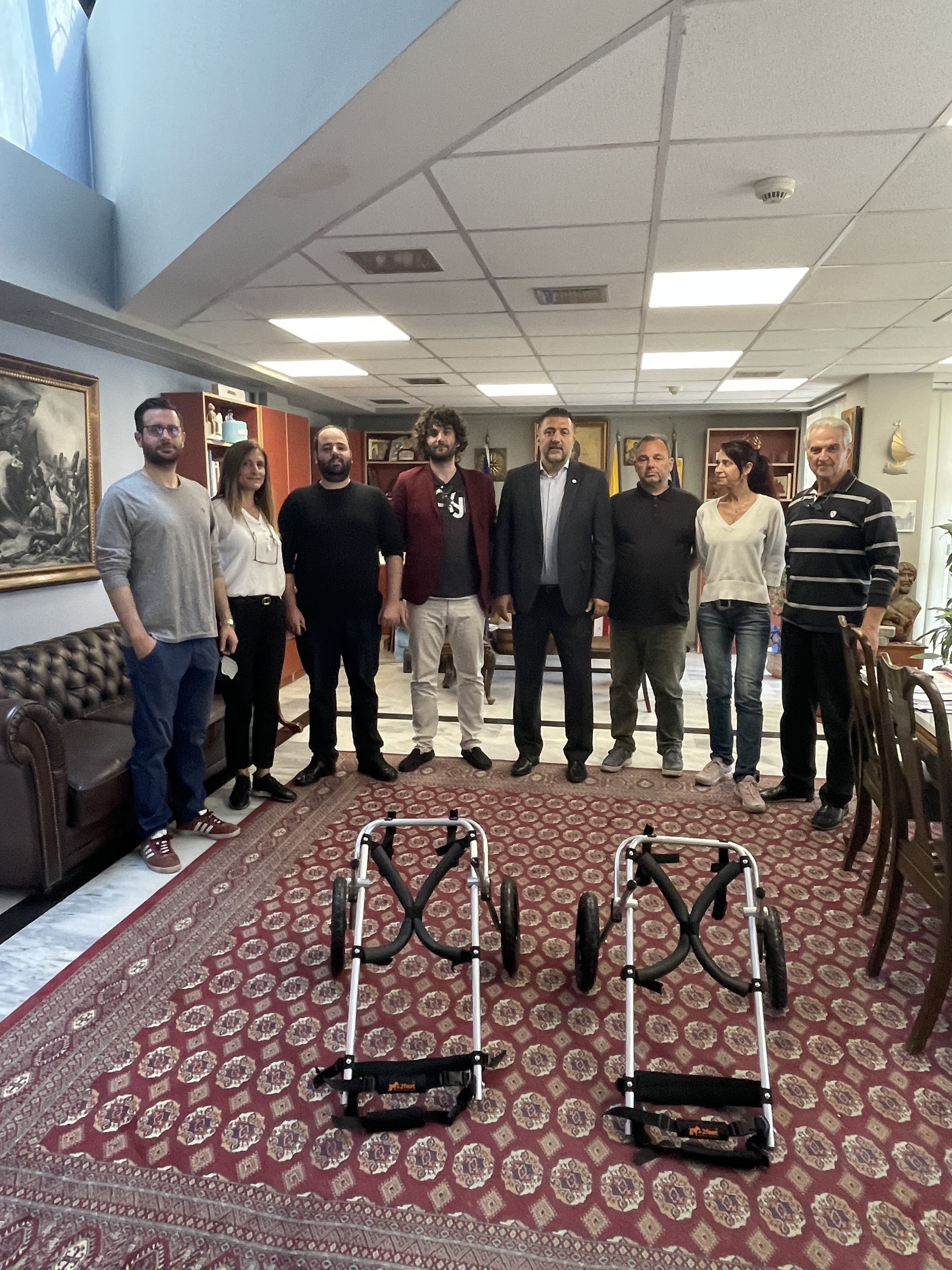 Η παράδοση των αμαξιδίων πραγματοποιήθηκε στο Δημαρχείο Παλαιού Φαλήρου και στο πλαίσιο της συνάντησης η Δημοτική Αρχή του Παλαιού Φαλήρου ενημερώθηκε για τις φιλοζωικές δράσεις και τις πρωτοβουλίες της ομάδας, η οποία έχει στόχο αφενός να προσφέρει και να δωρίζει αναπηρικά αμαξάκια για τους τετράποδους φίλους μας σε Δήμους και Φιλοζωικές Οργανώσεις και αφετέρου να μην μείνει κανένα ζωάκι με αναπηρία χωρίς πρόσβαση στις βόλτες του, στη κανονική ζωή και τη χαρά.