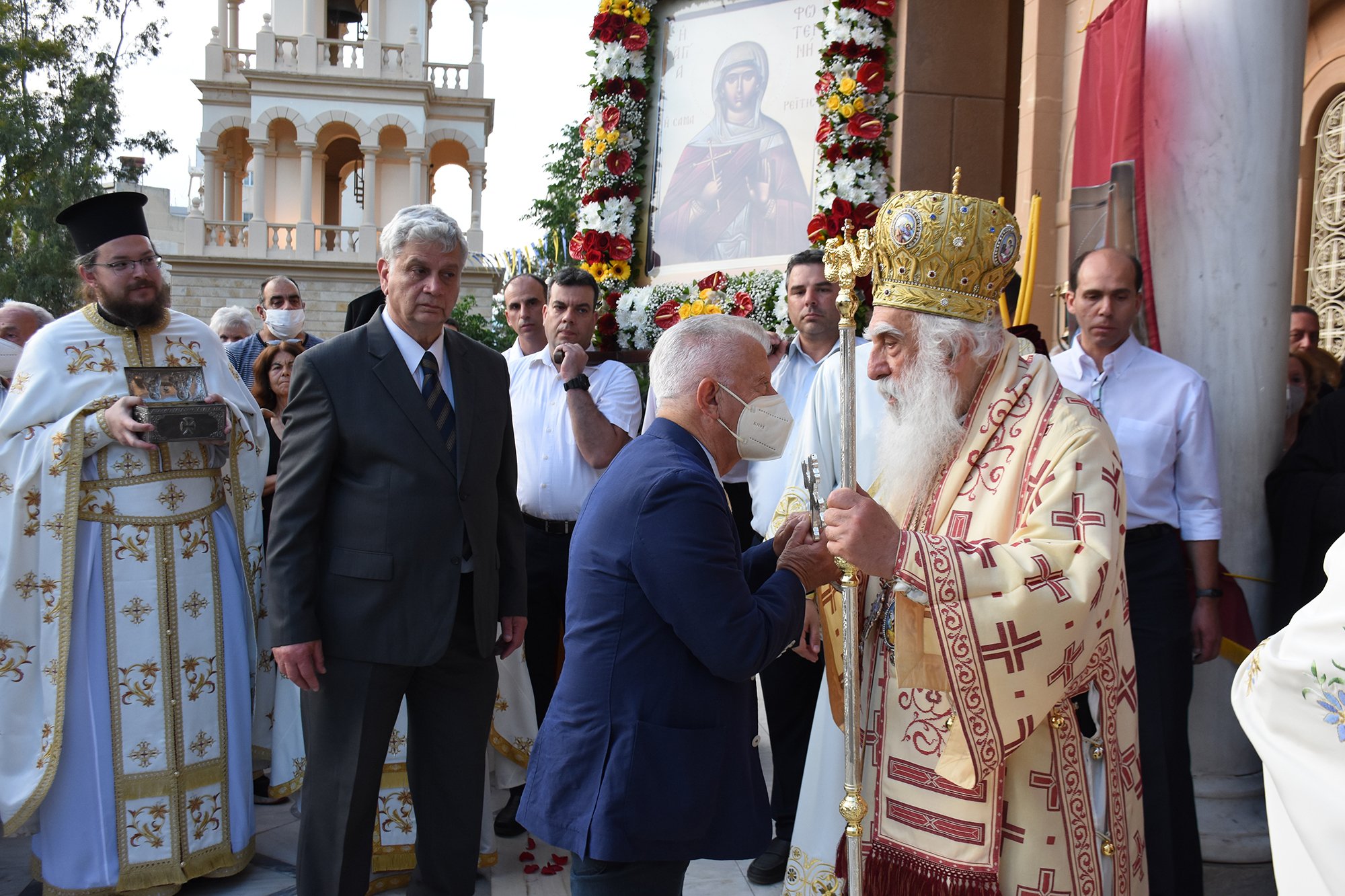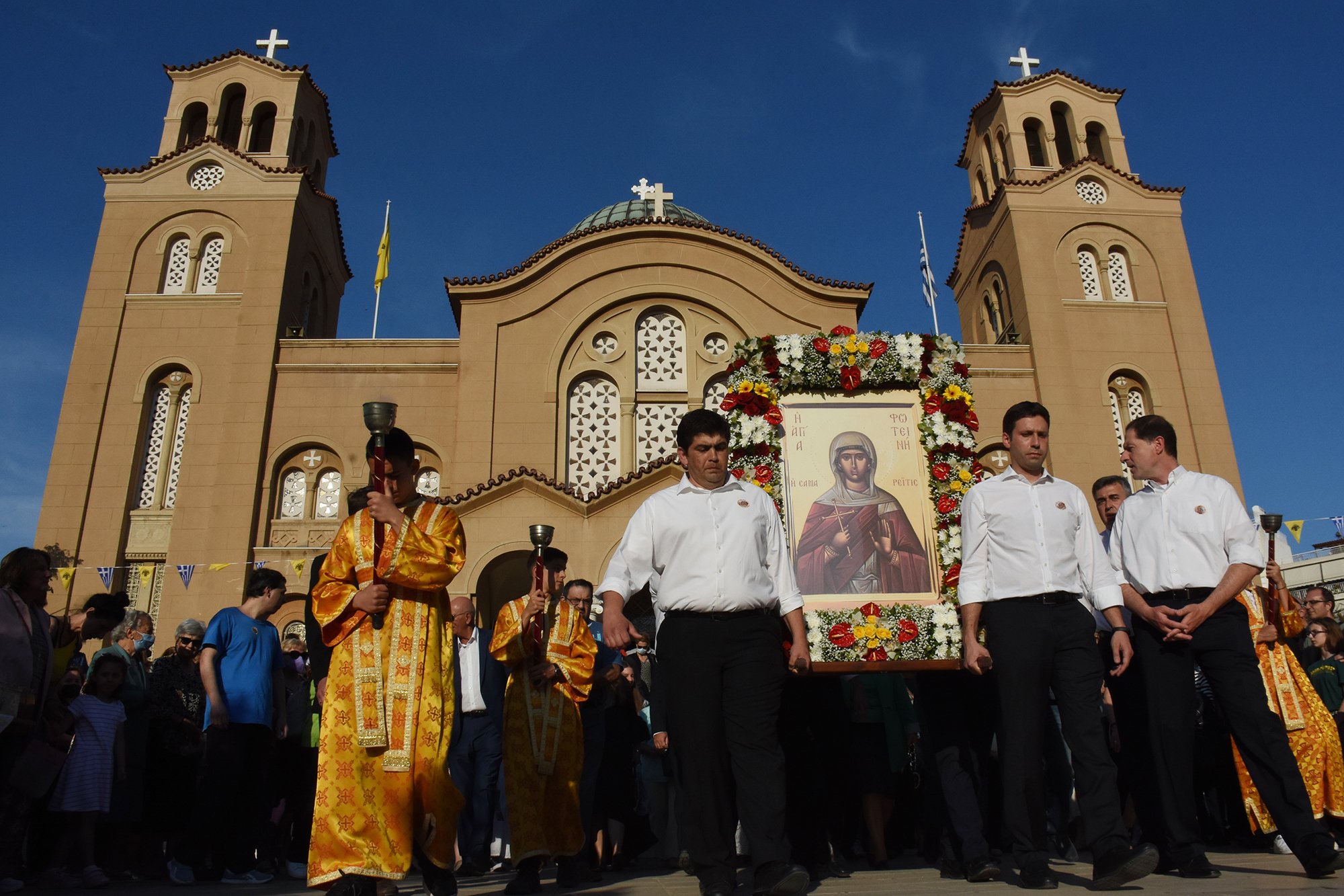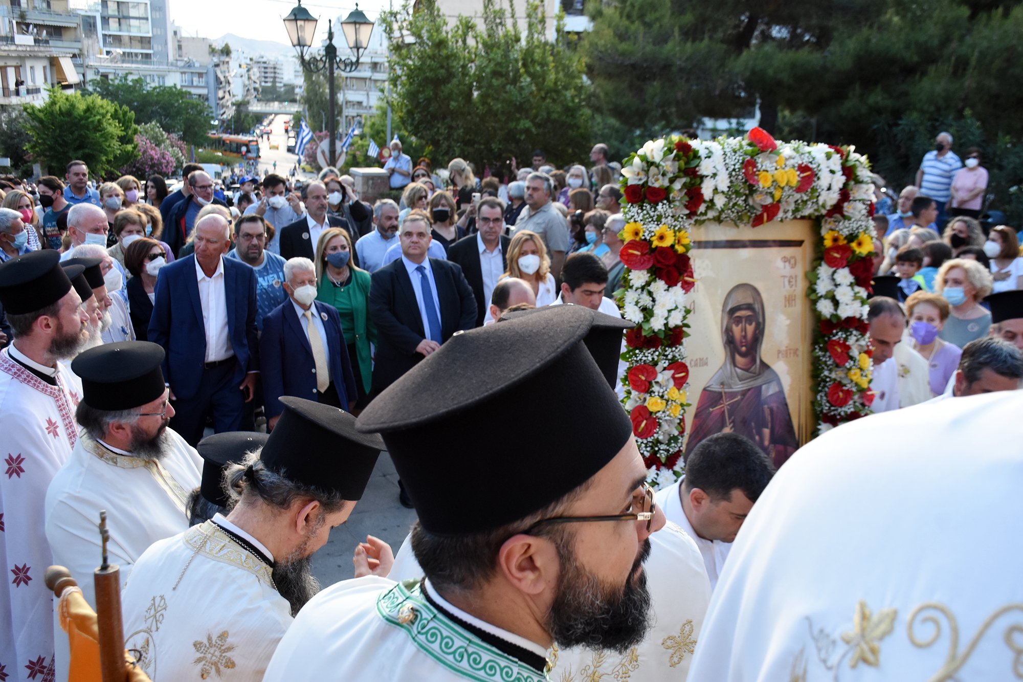 Με εκκλησιαστική λαμπρότητα και μεγαλοπρέπεια και με τη συμμετοχή Μητροπολιτών, πλήθους ιερέων, εκπροσώπων του Ελληνικού Κοινοβουλίου, της Περιφέρειας Αττικής, της Δημοτικής Αρχής, αλλά και πιστών, τιμήθηκε ο εορτασμός της Αγίας Φωτεινής στη Νέα Σμύρνη.