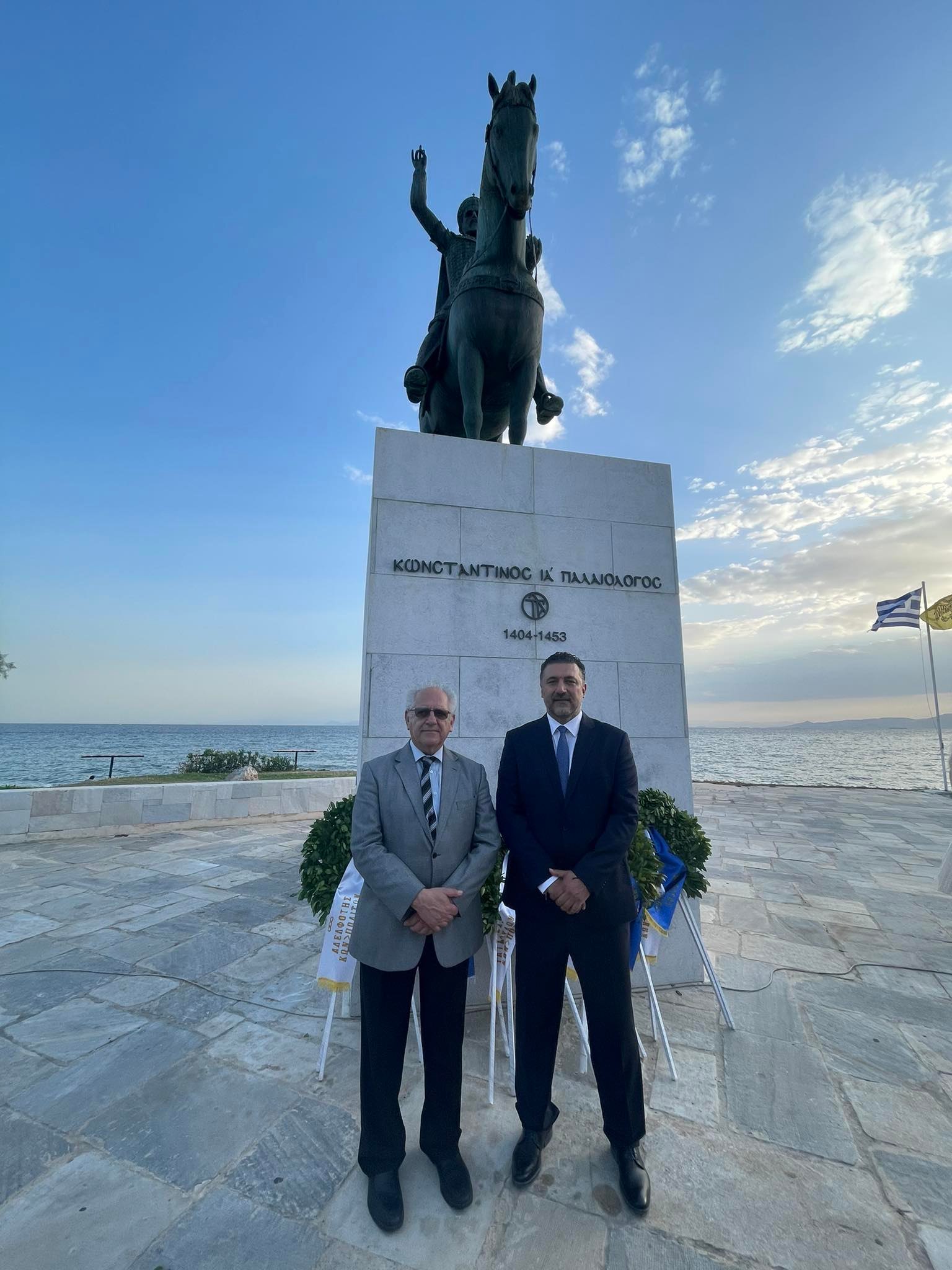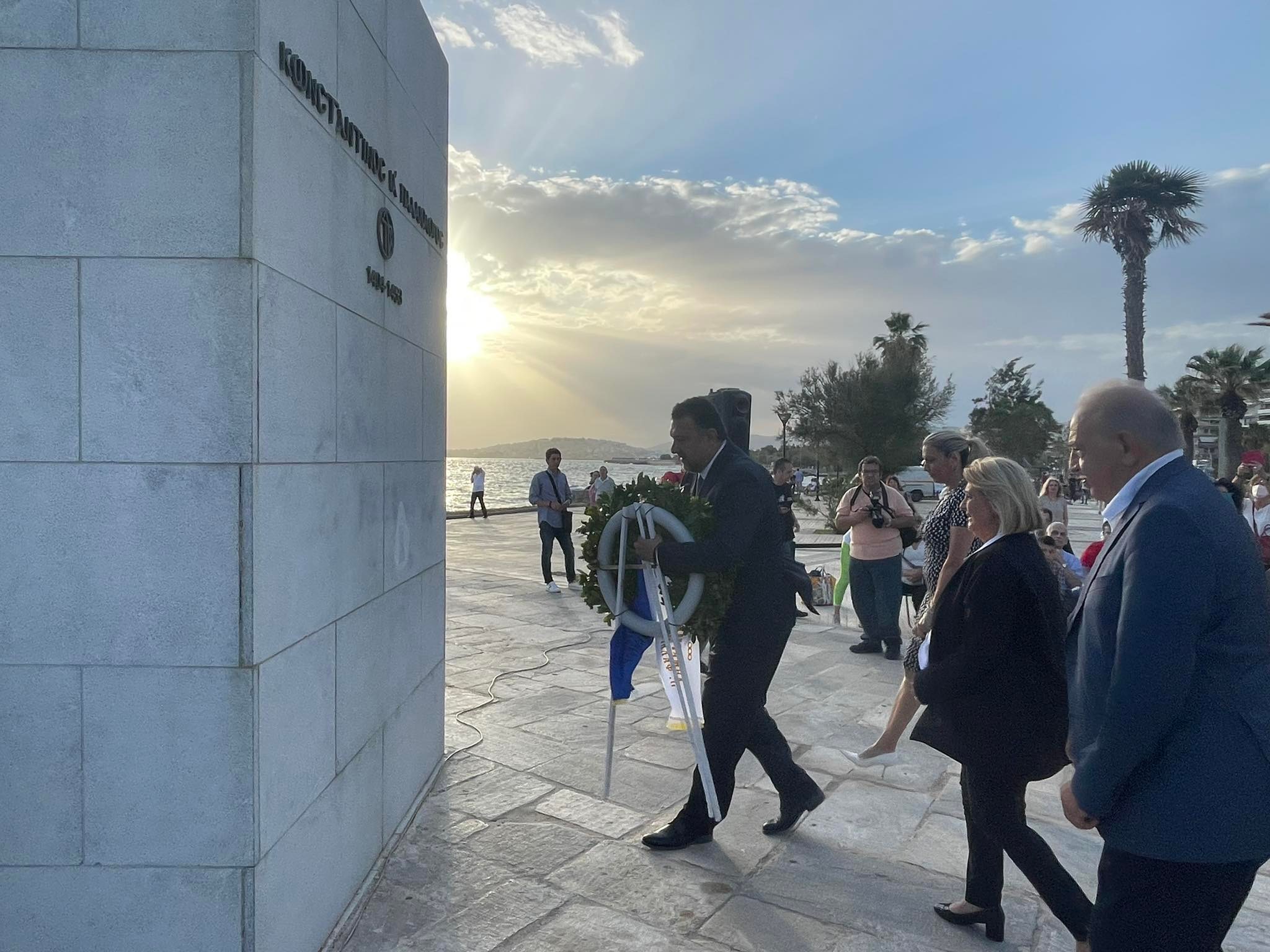 Ο κ. Ουζούνογλου μίλησε, εξάλλου, για την ζωή και το ηρωικό τέλος του Κωνσταντίνου ΙΑ΄ Παλαιολόγου και ευχαρίστησε τον Δήμαρχο Παλαιού Φαλήρου Γιάννη Φωστηρόπουλο για την πρωτοβουλία του, καθώς και τον τ. Δήμαρχο και Βουλευτή Διονύση Χατζηδάκη για την ανέγερση του ανδριάντα του Κωνσταντίνου ΙΑ΄ Παλαιολόγου στην παραλία του Παλαιού Φαλήρου.