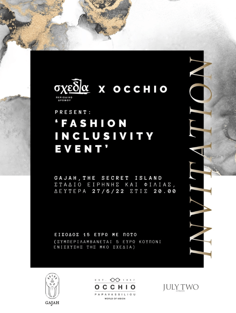 Τα Occhio Papavassiliou, καταστήματα οπτικών ειδών, συμπράττουν με τη Σχεδία, το περιοδικό δρόμου που στηρίζει το εισόδημα των άστεγων διανομέων του, και σας προσκαλούν τη Δευτέρα 27/06/22 στις 20:00 για να γιορτάσουμε την έλευση του καλοκαιριού στο Gajah The Secret Island, (πλησίον club Rever Seaside).