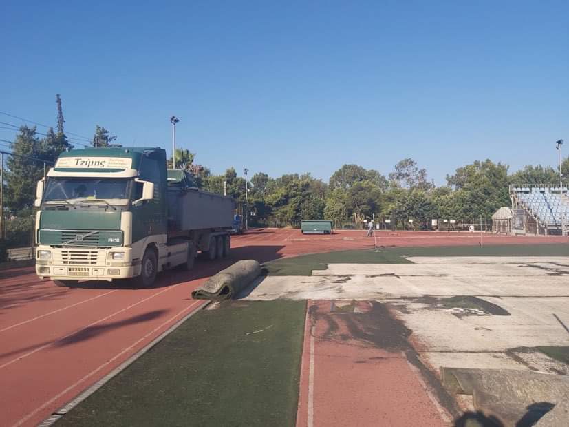 Το σημαντικό τεχνικό έργο της τοποθέτησης του νέου συνθετικού χλοοτάπητα στον αγωνιστικό χώρο του γηπέδου του Δημοτικού Αθλητικού Κέντρου του Δήμου Παλαιού Φαλήρου καθώς και της εγκατάστασης νέου ελαστικού τάπητα στον στίβο περιμετρικά του αγωνιστικού χώρου (ταρτάν),ξεκίνησε, με στόχο η κεντρική αθλητική υποδομή του Δήμου μας, σύντομα να παραδοθεί αναβαθμισμένη και ποιοτική προς χρήση από τα αθλητικά σωματεία και τους αθλούμενους.