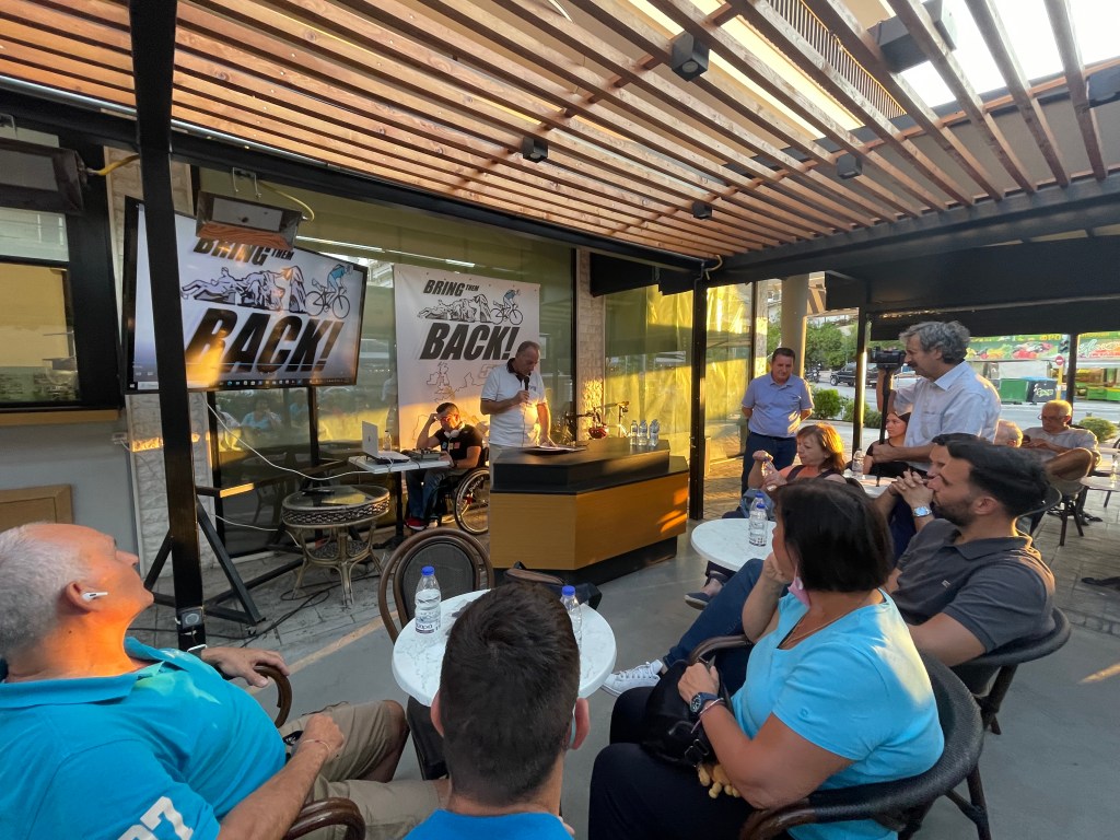 Όλοι οι παριστάμενοι ευχήθηκαν στους πέντε ποδηλάτες, καλή επιτυχία και καλά και ασφαλή χιλιόμετρα και δήλωσαν την επιθυμία τους, με χαρά να τους υποδεχθούμε στην Αθήνα και στον Ιερό Βράχο της Ακρόπολης στα τέλη του μήνα.