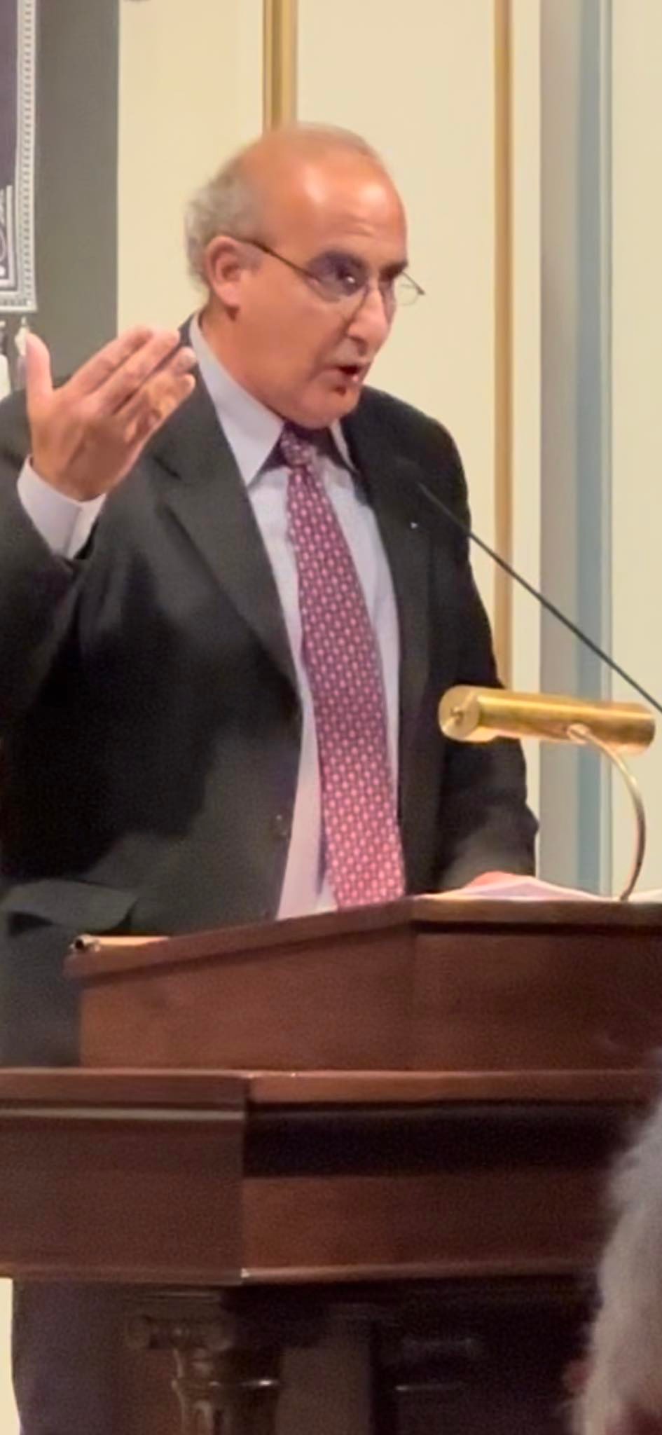 Στη συνέχεια, τον λόγο έλαβε ο γραμματέας της Πολιτικής Επιτροπής της Νέας Δημοκρατίας, Παύλος Μαρινάκης, διαβάζοντας ένα απόσπασμα από ένα βιβλίο που είχε γράψει ο παππούς του: «Δεν ξεριζώθηκαν μονάχα οι Έλληνες της Σμύρνης. Έσβησε και χάθηκε μεθοδευμένα και συστηματικά ό,τι το ελληνικό. Πραγματικά, η Σμύρνη έχει χάσει τη σκιά της. […] Τριγυρίζω, κοντεύει να μεσημεριάσει, προσπαθώντας να βρω μιαν άκρη. Κάποιος Τούρκος με βλέπει να ψάχνω αφοσιωμένος στον χάρτη της πόλης και με πλησιάζει. «Τι θέλετε;» μου λέει, σε άψογα ελληνικά. «Ήταν από εδώ η μάνα μου και προσπαθώ να βρω τη θέση του σπιτιού της, που βρισκόταν μπροστά στην Αγία Φωτεινή». «Δεν υπάρχει πια τίποτα, μόνο πάρκο»».