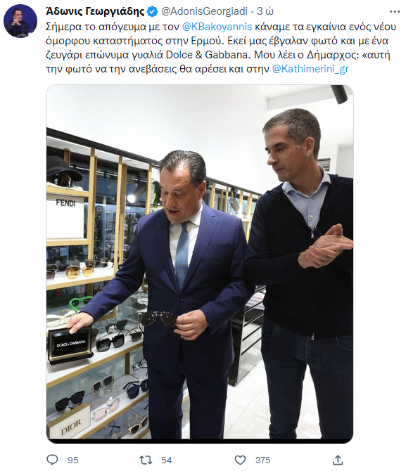 Ο Υπουργός Ανάπτυξης δημοσίευσε στον προσωπικό του λογαριασμό στο Twitter, εγκωμιαστικά σχόλια για το νέο κατάστημα Occhio.