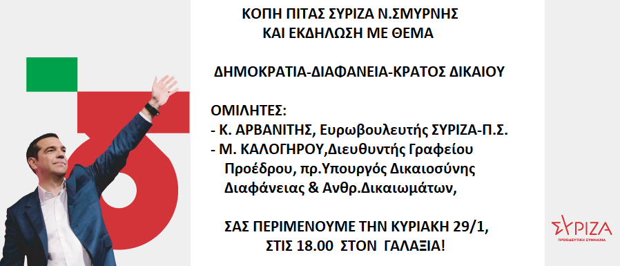 Σας καλούμε την Κυριακή 29/1 στις 18.00 στον Γαλαξία (2ας Μαΐου 12, κεντρική πλατεία) για να κόψουμε την πίτα μας και να μιλήσουμε για…
