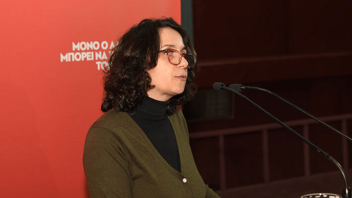 Την κεντρική ομιλία έκανε η Χριστίνα Παναγιωτακοπούλου, μέλος της ΚΕ του ΚΚΕ και υποψήφια βουλευτής Επικρατείας του Κόμματος.
