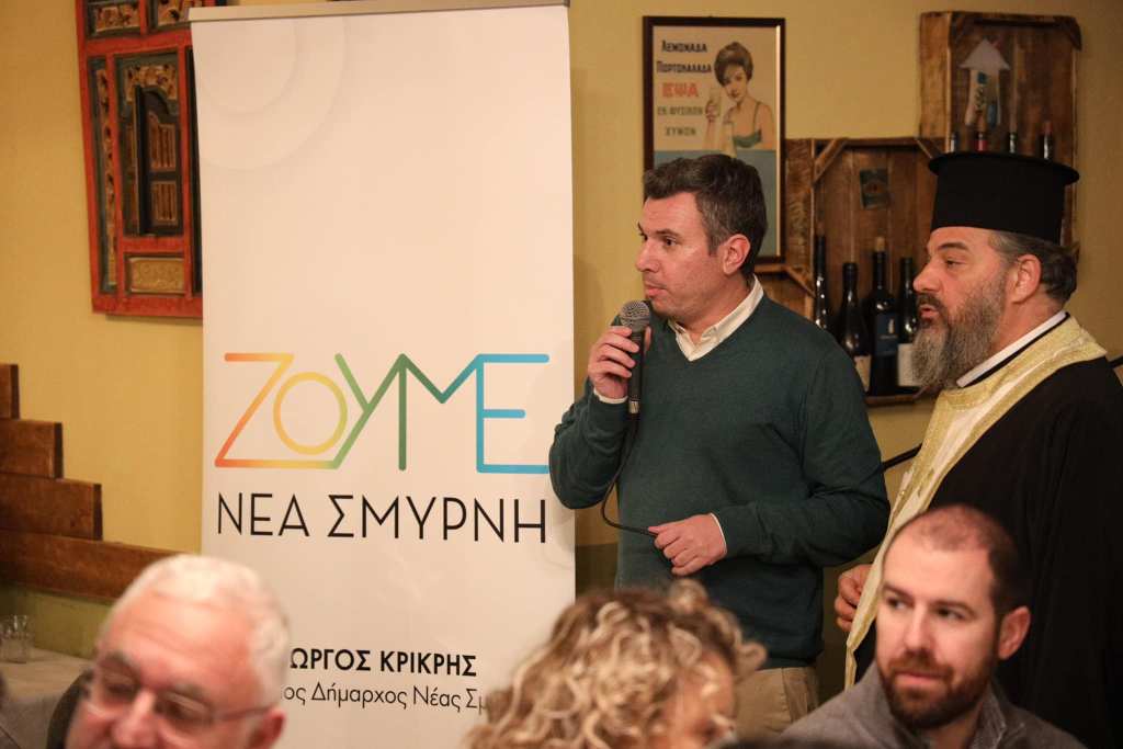Σε ζεστή ατμόσφαιρα πραγματοποιήθηκε, σε γνωστό μεζεδοπωλείο της Νέας Σμύρνης, η πρώτη κοπή πίτας της παράταξης «Ζούμε Νέα Σμύρνη». Ο χώρος γέμισε ασφυκτικά από μέλη της παράταξης και φίλους του υποψηφίου Δημάρχου Γιώργου Κρικρή.