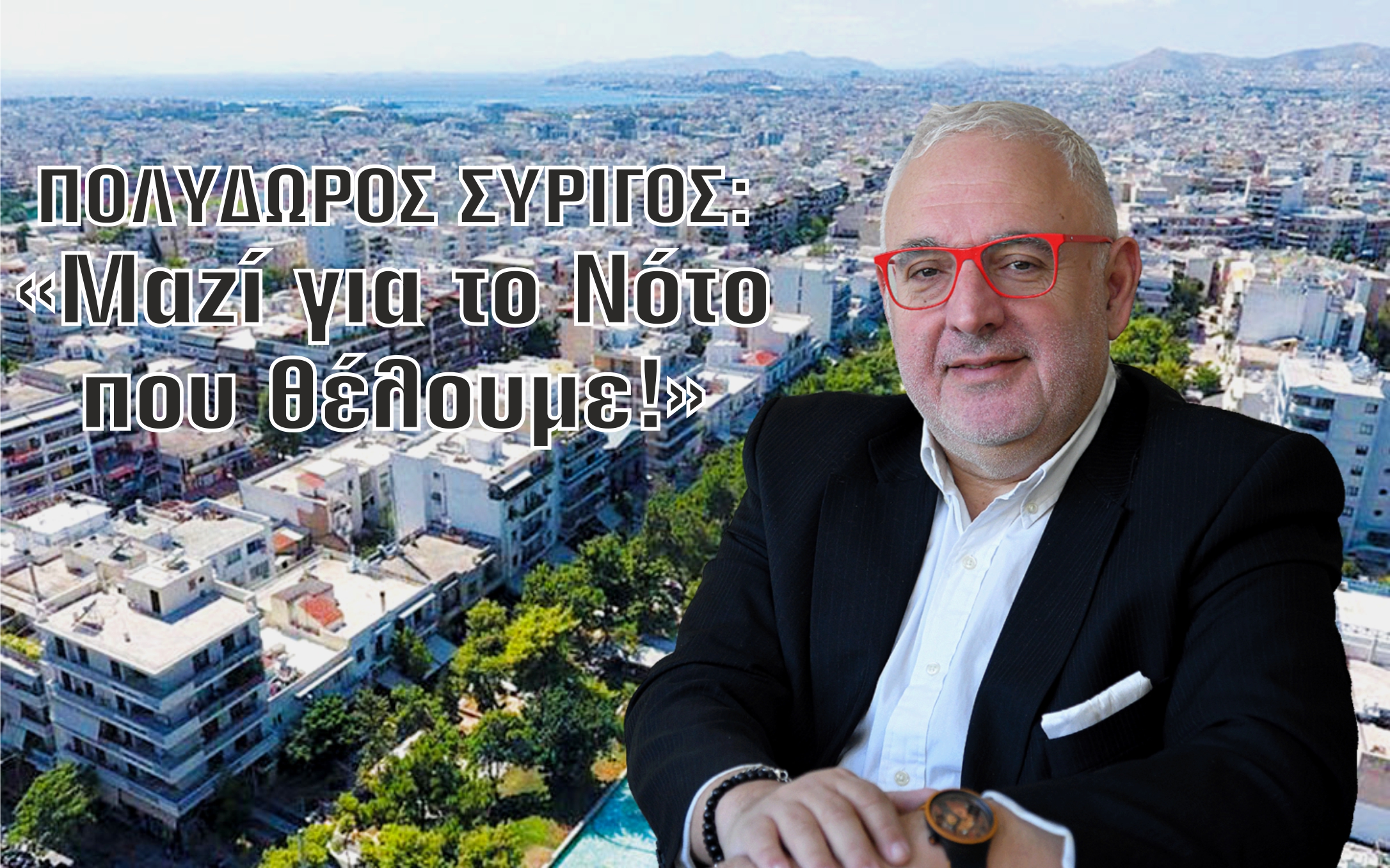 Ο Πολύδωρος Συρίγος είναι ένα πρόσωπο πολύ γνωστό στα νότια προάστια, κυρίως λόγω της πολύχρονης ενασχόλησης του με την Τοπική Αυτοδιοίκηση, αλλά και με άλλους τομείς όπως ο αθλητισμός κλπ. Επί σειρά ετών Αντιδήμαρχος, μέλος και διοικητικό στέλεχος του Πανιωνίου, με παρουσία σε θέσεις ευθύνης σε φορείς της κυβέρνησης, πήρε την απόφαση να θέσει υποψηφιότητα για Βουλευτής στον Νότιο Τομέα της Αθήνας.