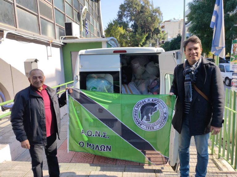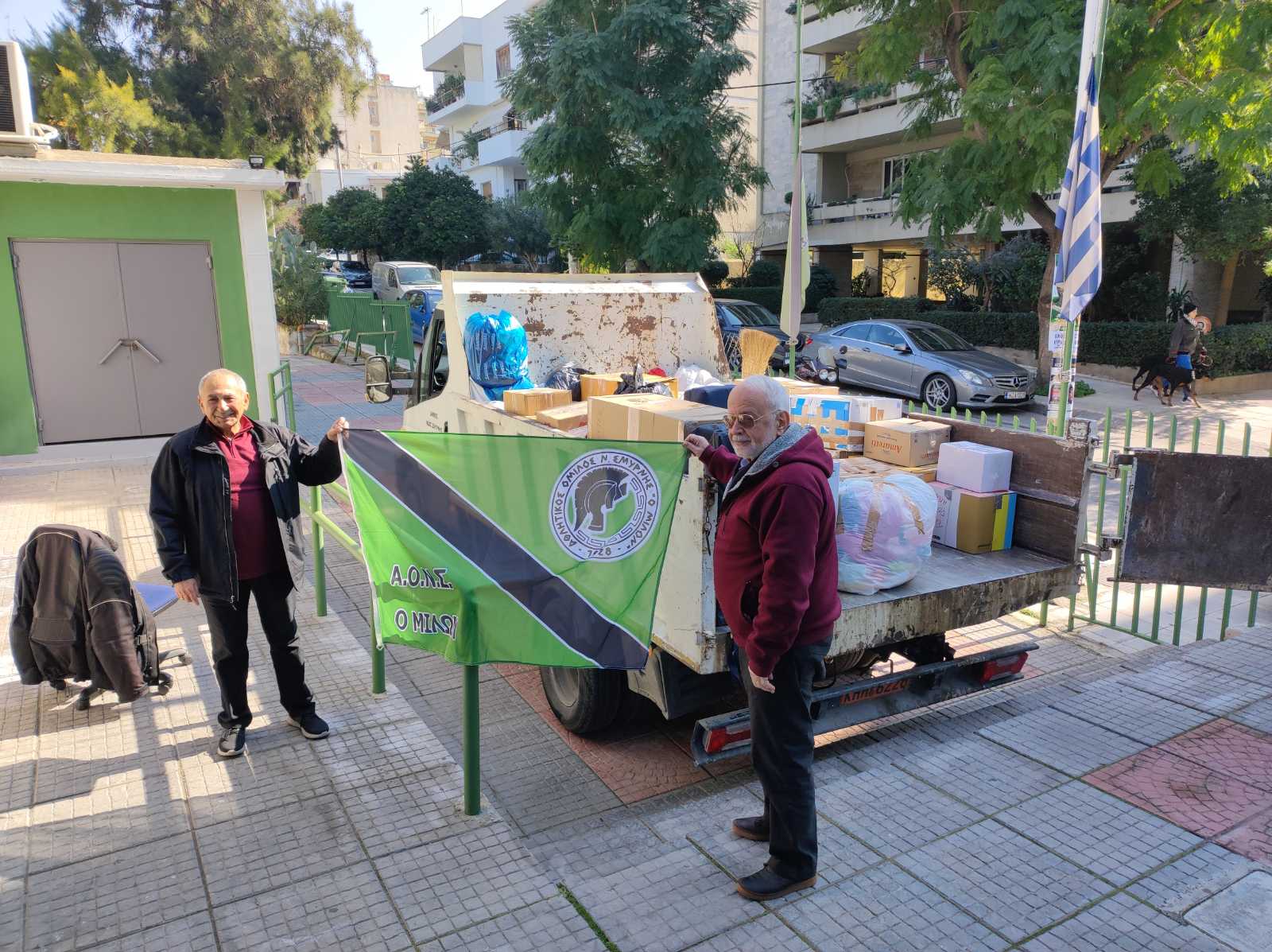 Σακούλες με ρούχα και κουβέρτες, τρόφιμα μακράς διάρκειας και γενικότερα είδη πρώτης ανάγκης, συγκεντρώθηκαν στα γραφεία του Μίλωνα, από το Σάββατο 11/2 έως και την Τετάρτη 15/2 και την Πέμπτη 15/2 γέμισαν δύο φορτηγά με προορισμό τις αποθήκες του «ΟΛΟΙ ΜΑΖΙ ΜΠΟΡΟΥΜΕ» στο Στάδιο Ειρήνης και Φιλίας, όπου από εκεί θα φορτωθούν σε κοντέινερ με προορισμό το κέντρο διαλογής στην Κωνσταντινούπολη.