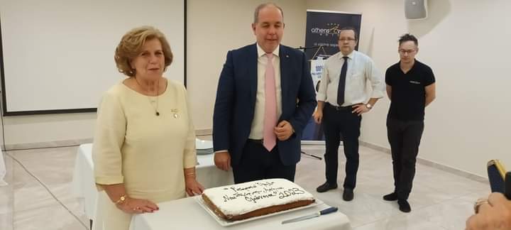 Η βραδιά συνεχίστηκε με την κοπή της πρωτοχρονιάτικης πίτας από τους Προέδρους των δύο Ροταριανών Ομίλων, Δημήτρη Οικονόμου (Νέα Σμύρνη) και Όλγα Φλέσσουρα (Αθήνα-Ομόνοια).