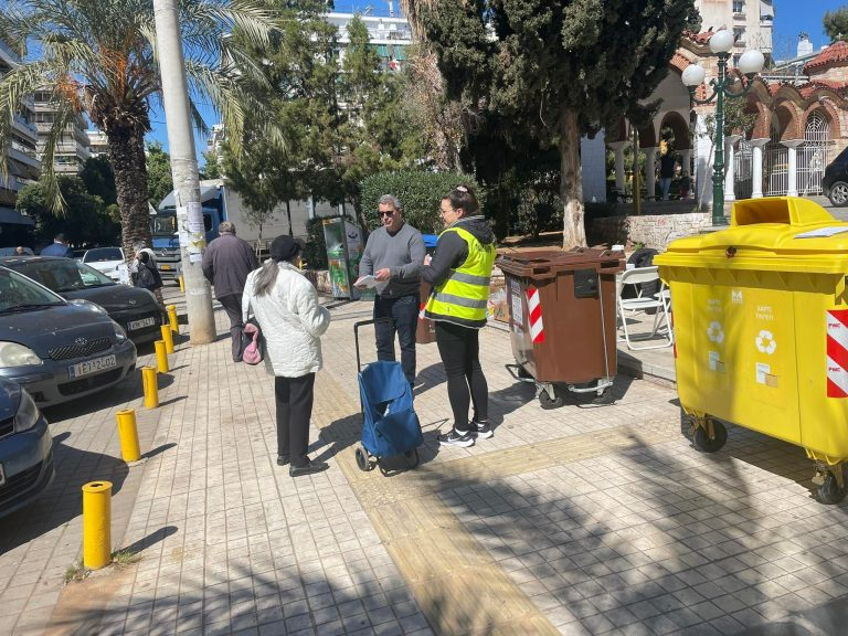 Στο πλαίσιο της ενημερωτικής καμπάνιας, στελέχη και εργαζόμενοι του Τομέα Καθαριότητας, παρουσία του Αντιδημάρχου Πόλης Δημήτρη Μητρέλλου , μοιράζουν σχετικό ενημερωτικό υλικό και παρουσιάζουν στους πολίτες σωστές πρακτικές για το πώς διαχειριζόμαστε τα διάφορα ρεύματα ανακύκλωσης απορριμμάτων.