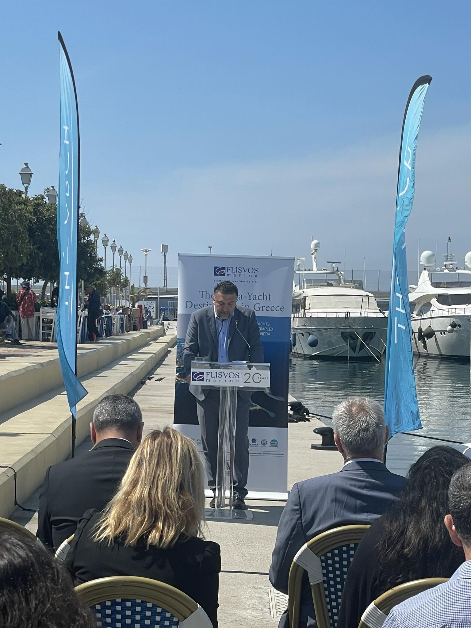Το σκάφος υποδέχθηκαν στην Μαρίνα Φλοίσβου ο Δήμαρχος Παλαιού Φαλήρου Γιάννης Φωστηρόπουλος, ο Περιφερειάρχης Αττικής Γιώργος Πατούλης, ο Υπουργός Μεταφορών της Γαλλίας Κλεμάν Μπον, ο Πρέσβης της Γαλλίας στην Αθήνα Πατρίκ Μεζονέβ , ο Αντιδήμαρχος Παλαιού Φαλήρου Κωνσταντίνος Χαρδαβέλλας καθώς και ο Διευθύνων Σύμβουλος της Μαρίνας Φλοίσβου Σταύρος Κατσικάδης.