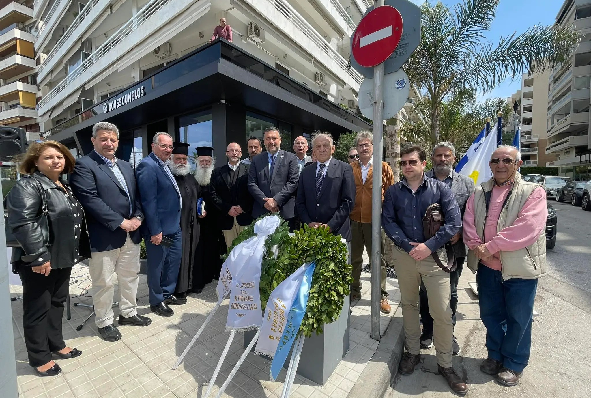 Παρουσία του Βουλευτή Νότιου Τομέα Β3 Διονύση Χατζηδάκη, του Μορφωτικού Λειτουργού της Πρεσβείας της Κυπριακής Δημοκρατίας στην Ελλάδα Τάκη Βοϊλα, και Αντιδημάρχων και Δημοτικών Συμβούλων, πραγματοποιήθηκε σήμερα, όπως γίνεται τα τελευταία χρόνια από τον Δήμο Παλαιού Φαλήρου, σεμνή τελετή εις μνήμη των Κυπρίων αγωνιστών Μιχαλάκη Καραολή και Ανδρέα Δημητρίου, στην στήλη που έχει ανεγερθεί τιμητικά για τον πατριωτικό αγώνα τους, επί της ομωνύμου οδού της πόλης.