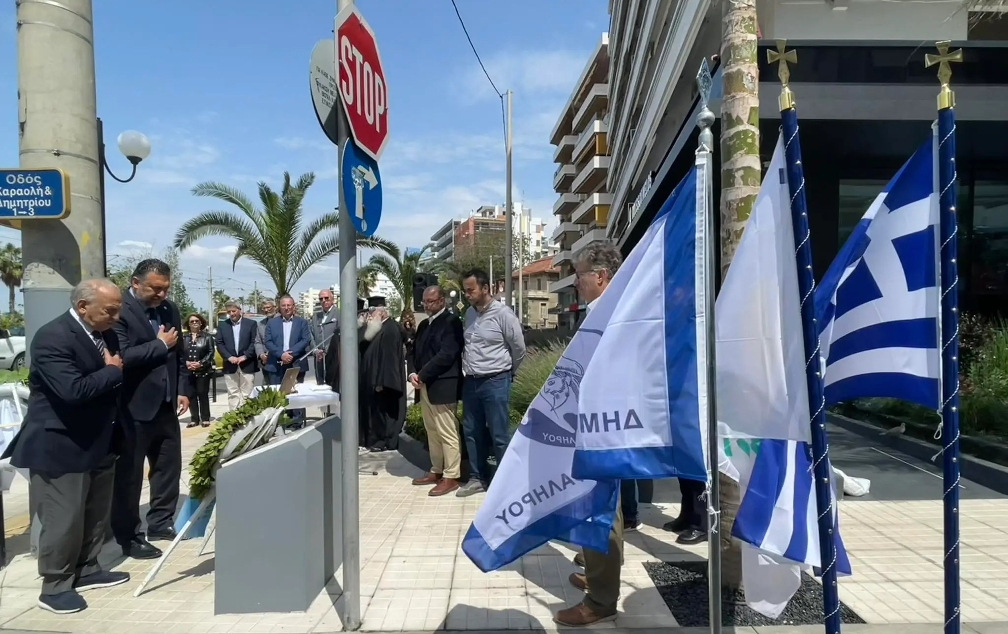 Παρουσία του Βουλευτή Νότιου Τομέα Β3 Διονύση Χατζηδάκη, του Μορφωτικού Λειτουργού της Πρεσβείας της Κυπριακής Δημοκρατίας στην Ελλάδα Τάκη Βοϊλα, και Αντιδημάρχων και Δημοτικών Συμβούλων, πραγματοποιήθηκε σήμερα, όπως γίνεται τα τελευταία χρόνια από τον Δήμο Παλαιού Φαλήρου, σεμνή τελετή εις μνήμη των Κυπρίων αγωνιστών Μιχαλάκη Καραολή και Ανδρέα Δημητρίου, στην στήλη που έχει ανεγερθεί τιμητικά για τον πατριωτικό αγώνα τους, επί της ομωνύμου οδού της πόλης.