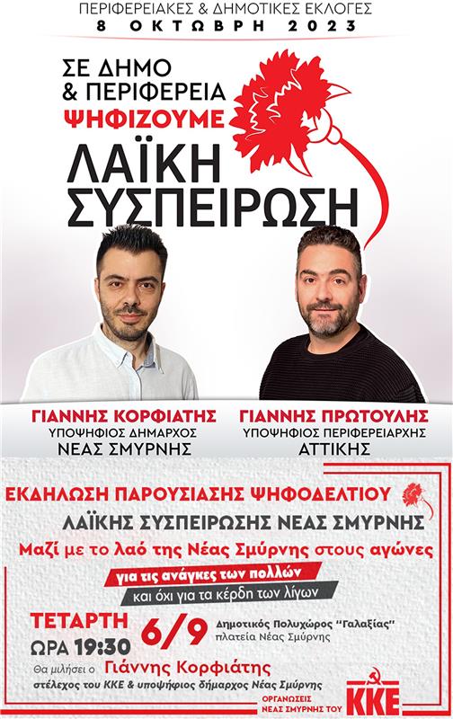 «Μαζί με το λαό της Νέας Σμύρνης στους αγώνες για τις ανάγκες των πολλών και όχι για τα κέρδη των λίγων», αναφέρουν στο κάλεσμα τους οι Οργανώσεις Ν. Σμύρνης του ΚΚΕ