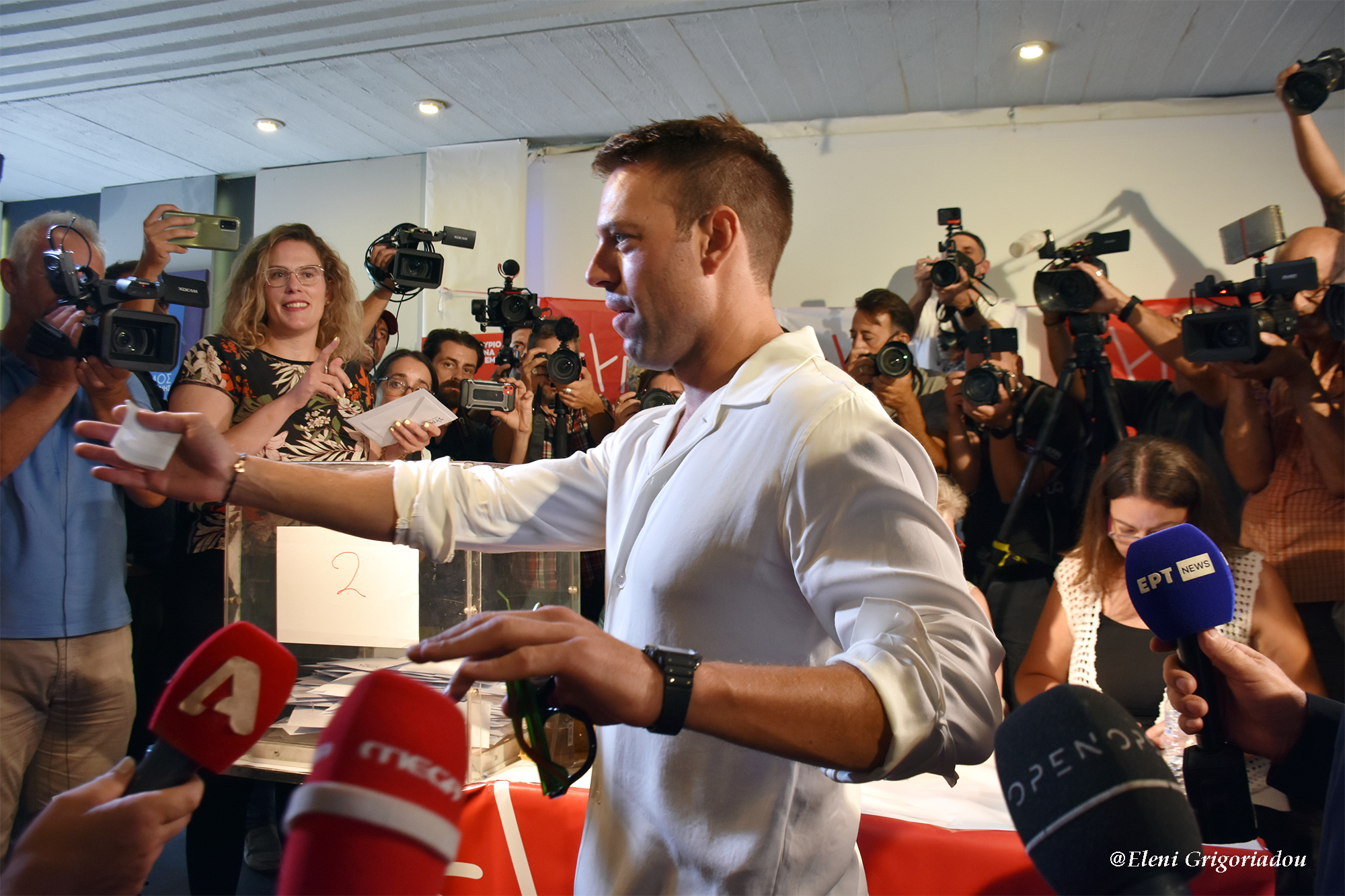 Σκηνές απείρου κάλλους διαδραματίστηκαν σήμερα στην Πλατεία μας. Υποδοχή super star, επιφύλασσαν στον υποψήφιο πρόεδρο του ΣΥΡΙΖΑ, Στέφανο Κασσελάκη, ο οποίος περίπου στις 12.30 το μεσημέρι της Κυριακής, πήγε στο εκλογικό κέντρο του Γαλαξία για να ψηφίσει στο δεύτερο γύρο των εκλογών. Όλα τα εγχώρια και τα διεθνή μέσα ενημέρωσης ήταν εκεί και έσκιζαν τα ιμάτιά τους προκειμένου να εξασφαλίσουν ένα πλάνο και μια δήλωση από τον υποψήφιο πρόεδρο.