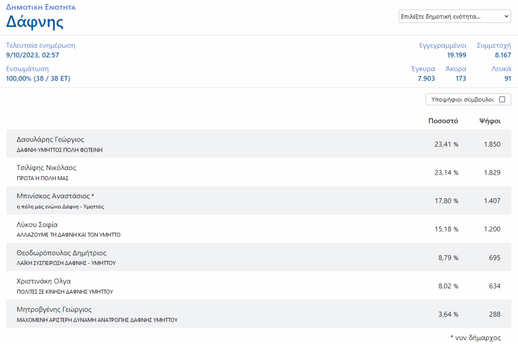 Ένα εκλογικό θρίλερ έζησαν οι υποψήφιοι και οι δημότες στο Δήμο Δάφνης – Υμηττού το βράδυ της Κυριακής.