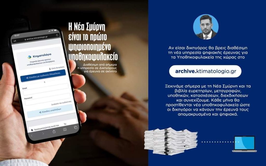 Το πρώτο Υποθηκοφυλακείο που πλέον λειτουργεί ψηφιακά, είναι αυτό της Νέας Σμύρνης.