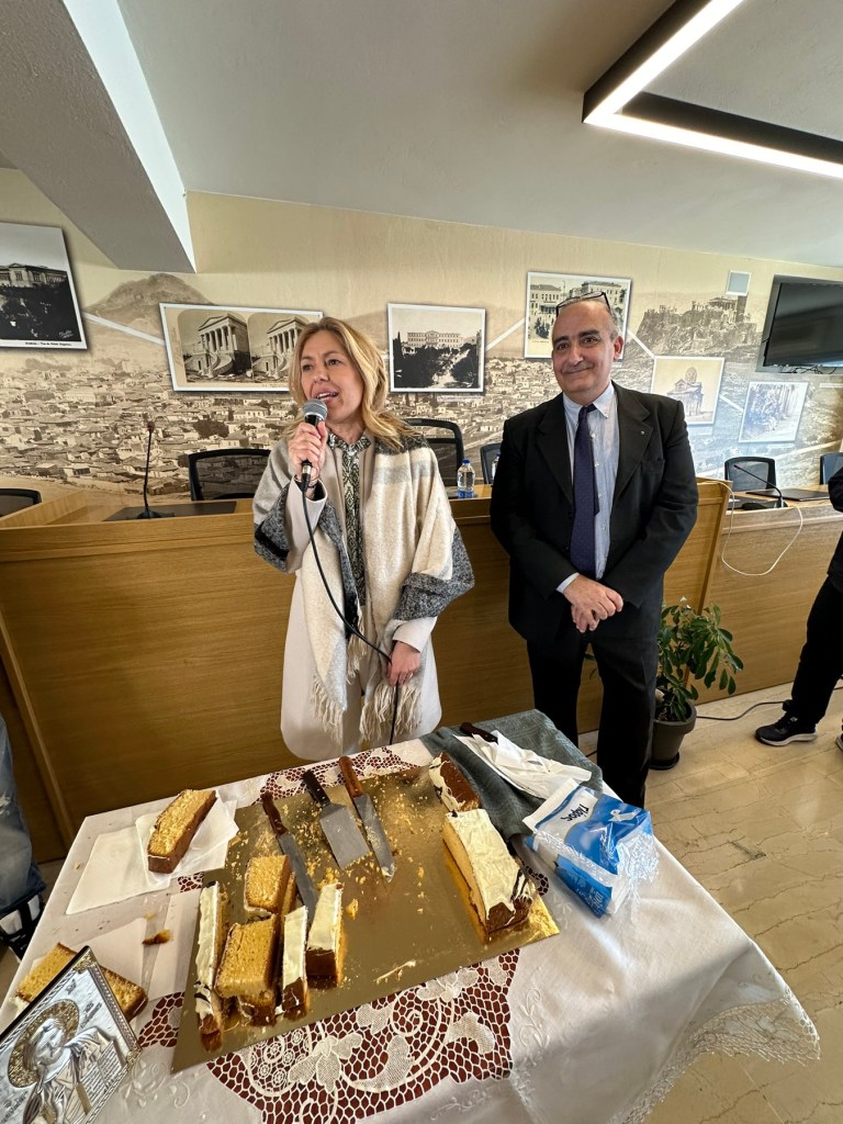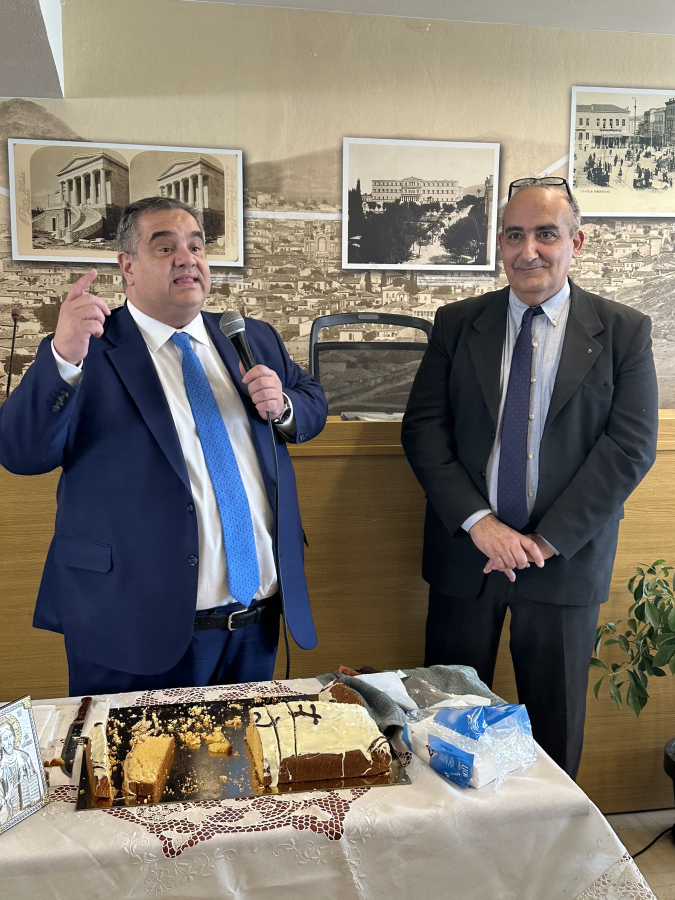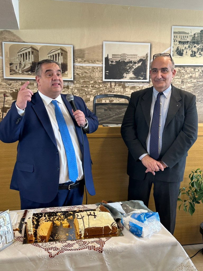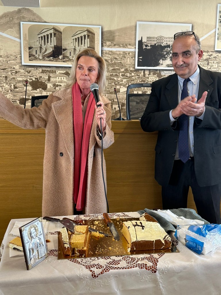 Επίσης ευχαριστεί το Νίκο Μωραΐτη και τη μητέρα του, μέλη μας, της εταιρείας «το Γευστικό», απέναντι από την Αγία Παρασκευή Νέας Σμύρνης, για τη ευγενική προσφορά τους στο έδεσμα- βασιλόπιτα. Τη κα. Κούλα Παπαγεωργίου για τη προσφορά του δώρου- μιας εικόνας- για τη τυχερή που κέρδισε το φλουρί της βασιλόπιτας για το κοινό και τη κα. Νανσύ Δρόλια για το γούρι της βασιλόπιτας για τους επίσημους καλεσμένους.