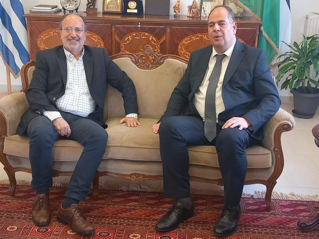 Τον Πρέσβη του Κράτους της Παλαιστίνης Γιούσεφ Ντορκχομ επισκέφτηκε την Τρίτη 6 Μαρτίου ο Δήμαρχος Νέας Σμύρνης Γιώργος Κουτελάκης. Η επίσκεψη πραγματοποιήθηκε προκειμένου να προχωρήσουν οι διαδικασίες αδελφοποίησης της Νέας Σμύρνης με όποιο Δήμο υποδειχτεί από την Παλαιστινιακή Αρχή.