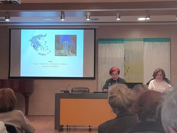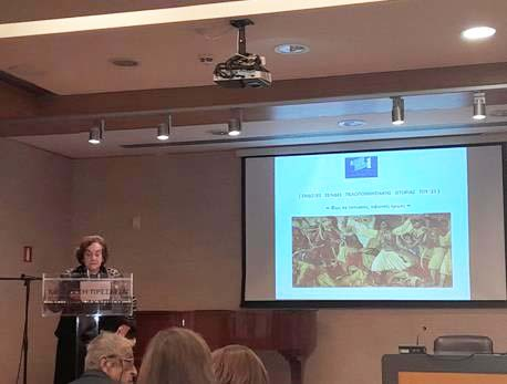 Στη συνέχεια, τον χαιρετισμό απεύθυνε η ακάματη πρόεδρος του Συλλόγου Γ. Δροσίνη κα. Ελένη Βαχάρη, η οποία ευχαρίστησε το σπίτι της Κύπρου για τη φιλοξενία μιας και πολύ συχνά εντάσσει εκδηλώσεις του Συλλόγου Οι Φίλοι του Μουσείου Γ. Δροσίνη ενώ μας προϊδέασε ότι θα ακολουθήσει μια άψογη παρουσίαση!