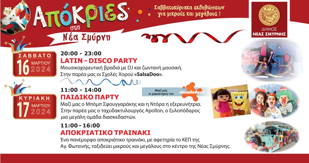 Συνεχίζονται οι Αποκριάτικες εκδηλώσεις που διοργανώνει ο Δήμος Νέας Σμύρνης.