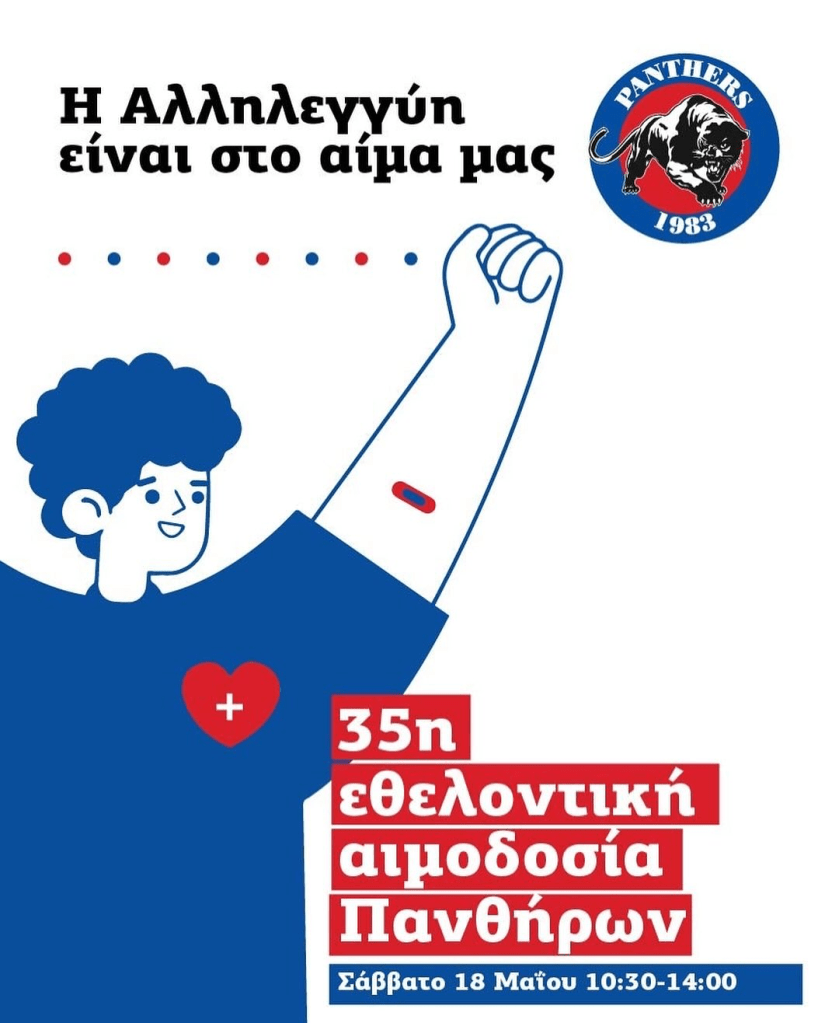 Το Σάββατο 18 Μαΐου θα πραγματοποιηθεί η 35η Εθελοντική Αιμοδοσία που διοργανώνουν οι οργανωμένοι φίλοι του Πανιωνίου «Πάνθηρες».