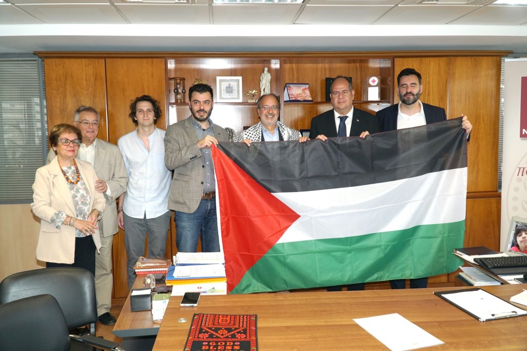 Ο Πρέσβης παρέδωσε στον Γ. Κουτελάκη την σημαία της Παλαιστίνης, την οποία είχε ζητήσει ο Δήμαρχος στην επίσκεψή του, προκειμένου να αναρτηθεί στις 15 Μαΐου στο Δημαρχείο. Σε ανάλογη κίνηση θα προχωρήσουν τουλάχιστον 30 ακόμα Δημαρχεία σε ένδειξη αλληλεγγύης στον Παλαιστινιακό λαό. Η σημαία θα τοποθετηθεί μαζί με την Ελληνική και την σημαία του Δήμου στην προμετωπίδα του Δημαρχείου.