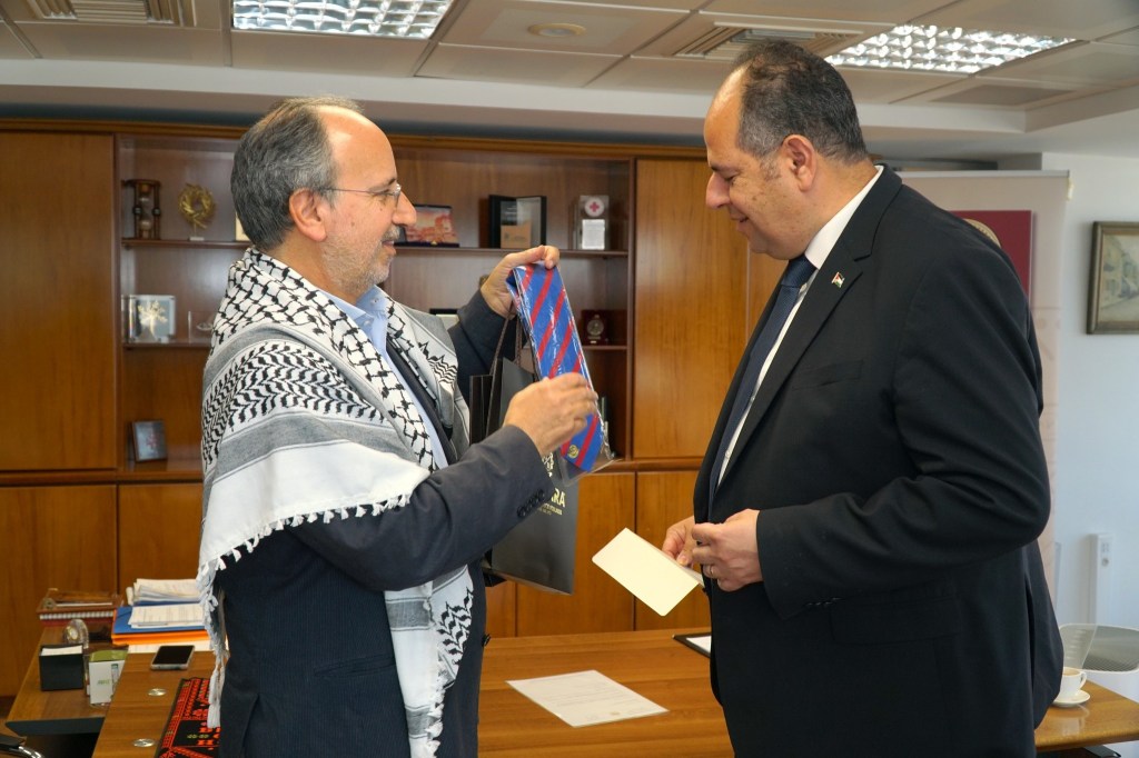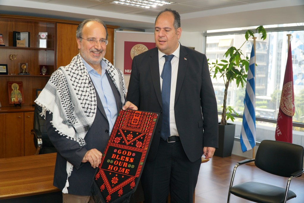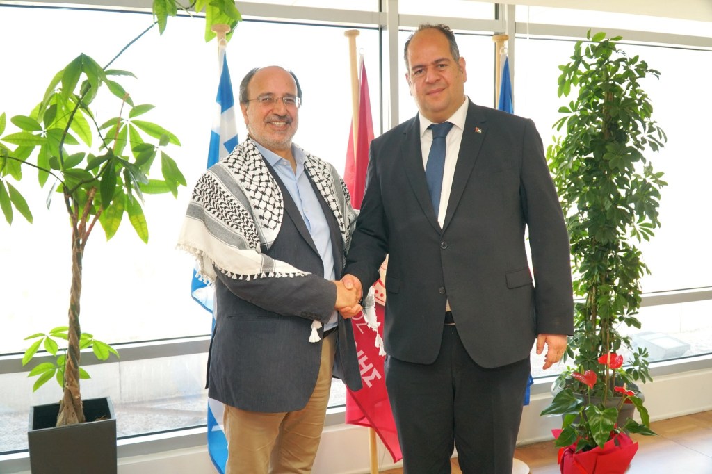Τον Δήμαρχο Νέας Σμύρνης, Γιώργο Κουτελάκη, επισκέφτηκε σήμερα ο Πρέσβης της Παλαιστινιακής Αρχής στην Ελλάδα Γιουσέφ Ντόρκχομ, ανταποδίδοντάς του την επίσκεψή του στην Πρεσβεία πριν από δύο μήνες.