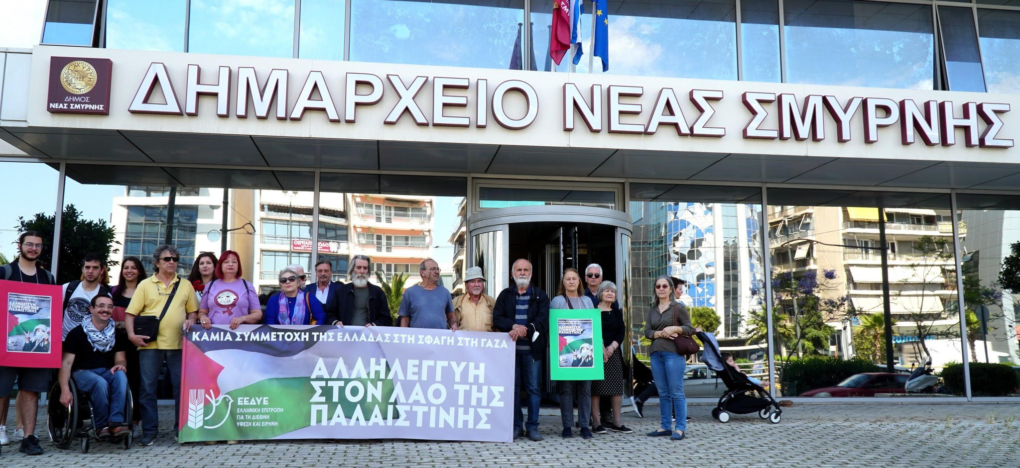 Ο Δήμαρχος Ν. Σμύρνης Γιώργος Κουτελάκης σε δηλώσεις του τόνισε τα εξής: «Πόλη προσφύγων, πόλη γέννημα καταστροφής και γενοκτονίας η πόλη μας, εκφράζει με έντονο τρόπο την στήριξη και την αλληλεγγύη της στον δοκιμαζόμενο επί δεκαετίες Παλαιστινιακό λαό και ιδιαίτερα σήμερα που καθίσταται θύμα γενοκτονίας και εγκληματικής κρατικής βίας και εξόντωσης με δεκάδες χιλιάδες άμαχα θύματα εκ μέρους του κράτους του Ισραήλ.»