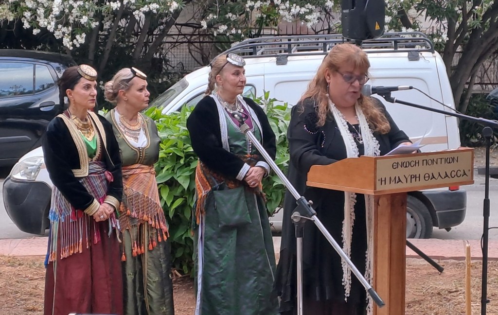 Ο σεβασμιότατος Μητροπολίτης Ν. Σμύρνης κ.κ. Συμεών τέλεσε Επιμνημόσυνη δέηση στη μνήμη των χιλιάδων θυμάτων της Γενοκτονίας και στη μνήμη του πρόσφατα αποβιώσαντα φωτισμένου Πόντιου διανοούμενου και ανιδιοτελούς πολιτικού Μιχάλη Χαραλαμπίδη, στην προσωπικότητα του οποίου αναφέρθηκε η πρόεδρος της Ένωσης Ράνια Χρυσοχοΐδου. Στη συνέχεια, αναφέρθηκε στα ντοκουμέντα μέσα από τα οθωμανικά αρχεία, στη στάση της Τουρκίας μέχρι σήμερα και στη σημασία του αγώνα για την αναγνώριση της Γενοκτονίας. Μετά την κατάθεση στεφάνων ακολούθησε καλλιτεχνικό αφιέρωμα από τη χορωδία της Ένωσης υπό τη διεύθυνση της μουσικολόγου Δέσποινας Κανάκη-Χρυσοχοΐδου και τη χορευτική ομάδα.Με την ολοκλήρωση της εκδήλωσης μοιράστηκαν κόλλυβα από το “σινίν” και ποικίλα ποντιακά εδέσματα.